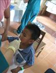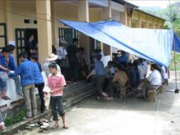 One morning, we arrived at clinic and the rain started pouring. A tarp was quickly tied off to the porch to give more shelter from the rain. Later, we were told that the people were amazed that we would get soaking wet just to keep the patients dry. It was such a simple gesture; we had not thought twice about it. Yet it was received as a surprise that one individual would care so much for another. This is Vietnam, so the rain cover later became shade from the hot afternoon sun that dried us out.